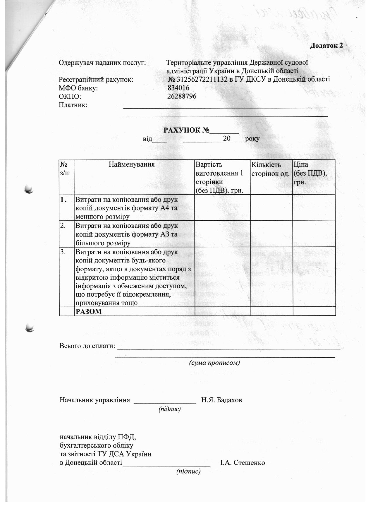 Реквізити для оплати запитувачами інформації рахунків на відшкодування фактичних витрат на копіювання або друк документів.